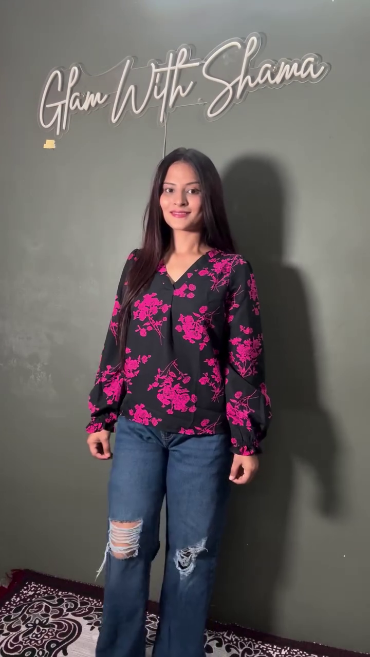 The tailored yet comfortable fit makes this floral top easy to style with a variety of bottoms. Pair it with denim jeans, as shown, for a chic everyday look, or style it with tailored trousers, skirts, or palazzos for a more polished appearance. Whether you’re heading out for brunch, a shopping trip, casual office wear, or a dinner date, this top adapts seamlessly to your lifestyle.