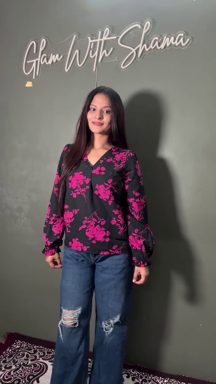 One of the standout features of this women’s top is its timeless floral print, which never goes out of style. Florals add freshness and charm to any outfit, and this design balances bold color with elegance, making it suitable for all age groups. The black base ensures easy pairing, while the pink floral pattern adds just the right amount of vibrancy.
