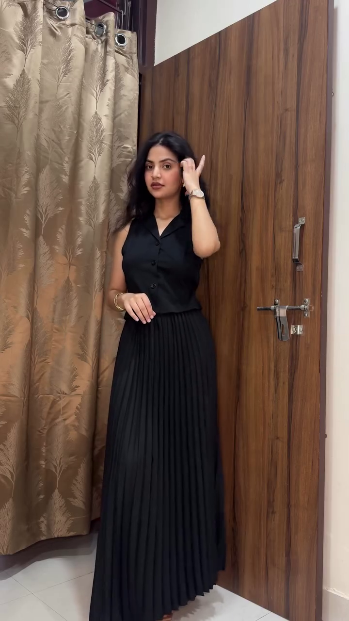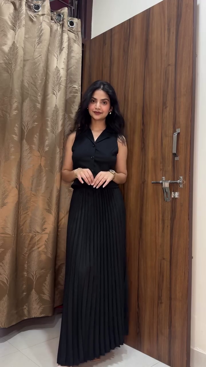 This black pleated maxi dress is incredibly versatile. Style it with heels and statement jewelry for parties or evening events, or pair it with flats and minimal accessories for a sophisticated daytime look. Layer it with a blazer or shrug for office wear, or add a belt to define the waist further for a customized silhouette.