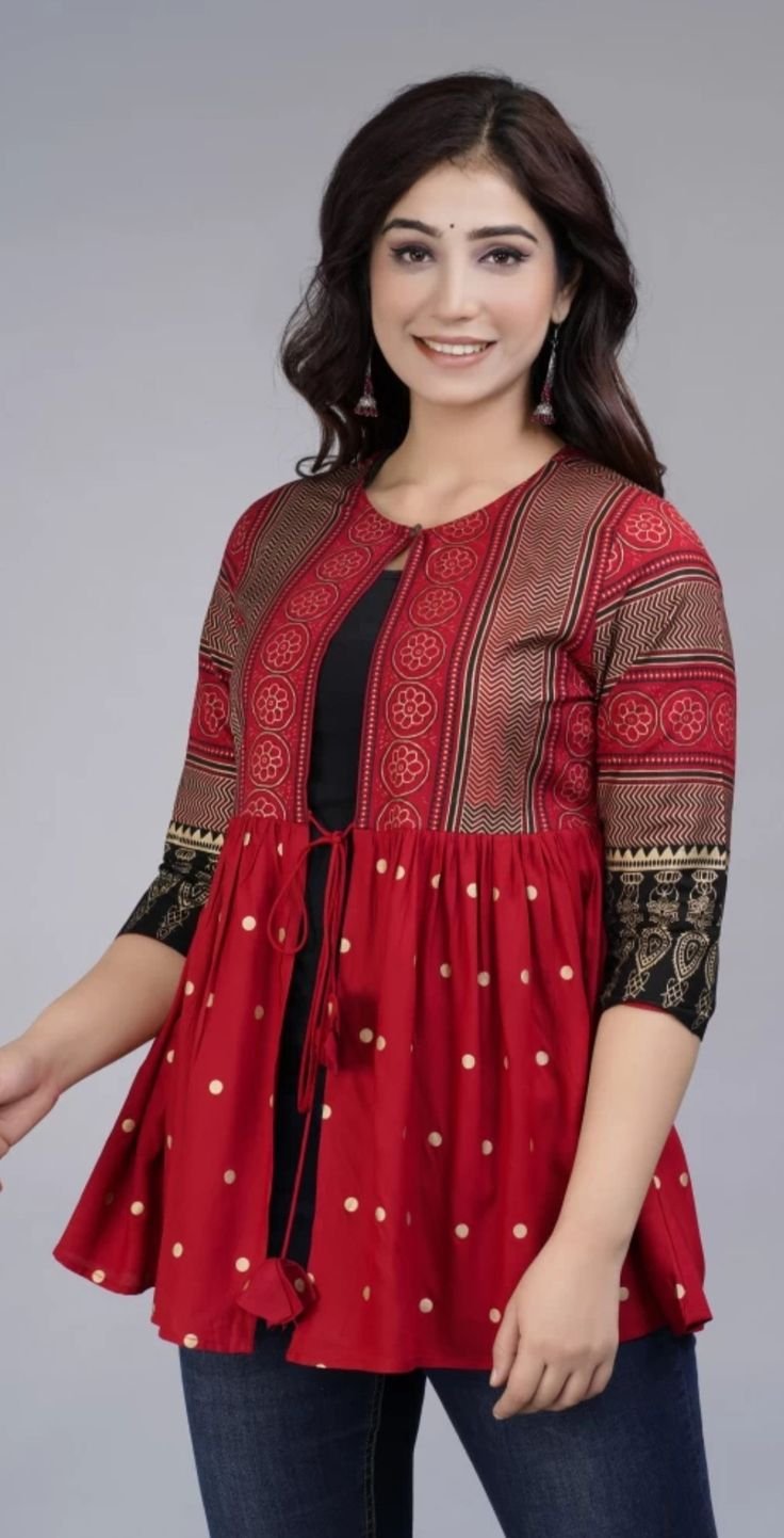 Boho Chic Ethnic Printed Red Peplum Top quantity