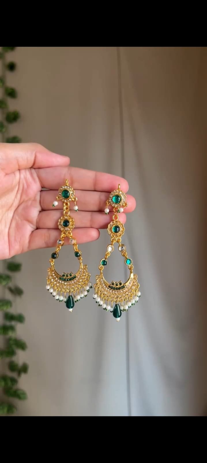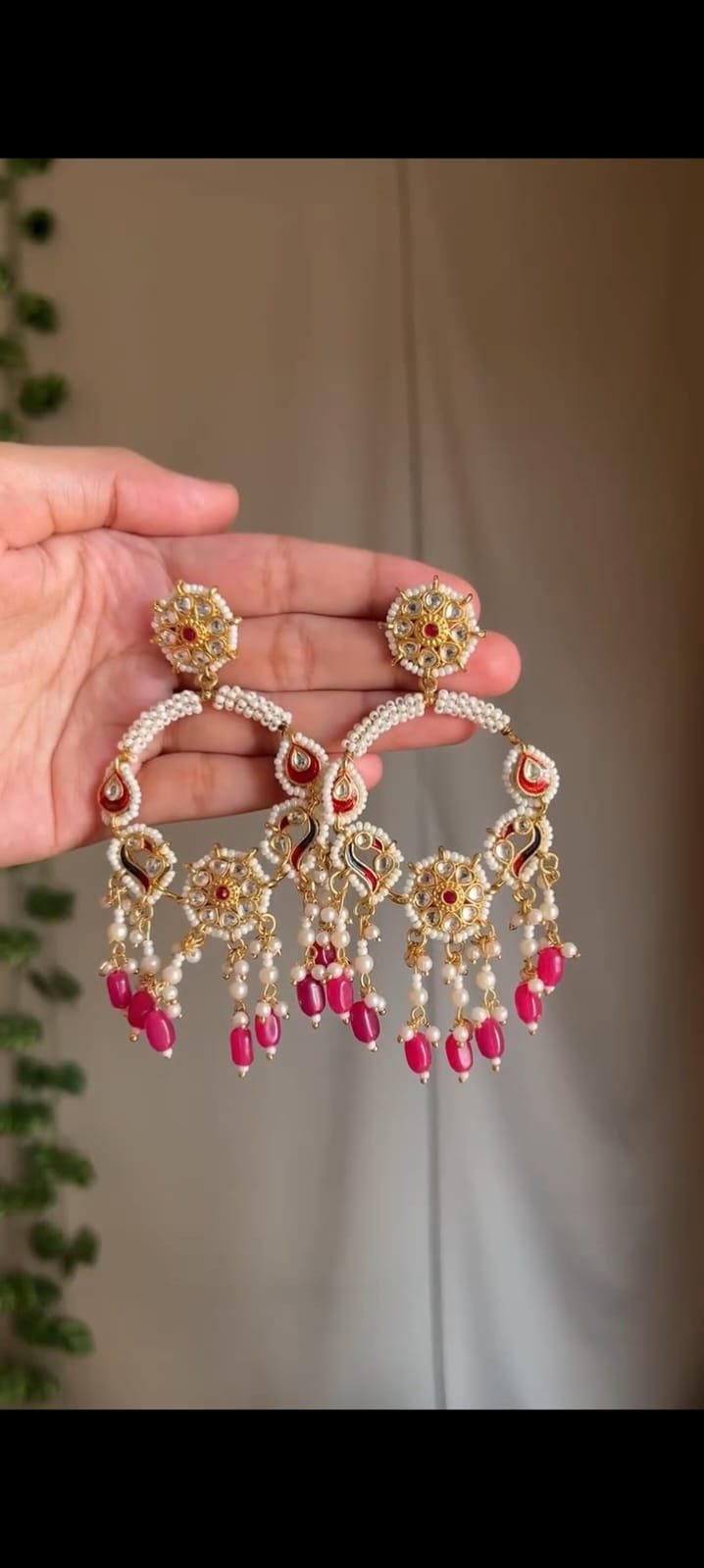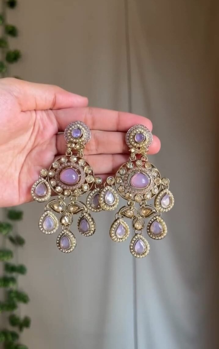 Make a graceful statement with these exquisite Kundan chandelier earrings, beautifully designed with soft lavender stone accents and a classic gold-tone finish. The intricate craftsmanship and traditional detailing give these earrings a regal charm, perfect for weddings, festive celebrations, and special occasions. Lightweight yet striking, they pair effortlessly with lehengas, sarees, and ethnic suits, adding a touch of timeless elegance to any ensemble. A must-have accessory for lovers of traditional Indian jewelry.