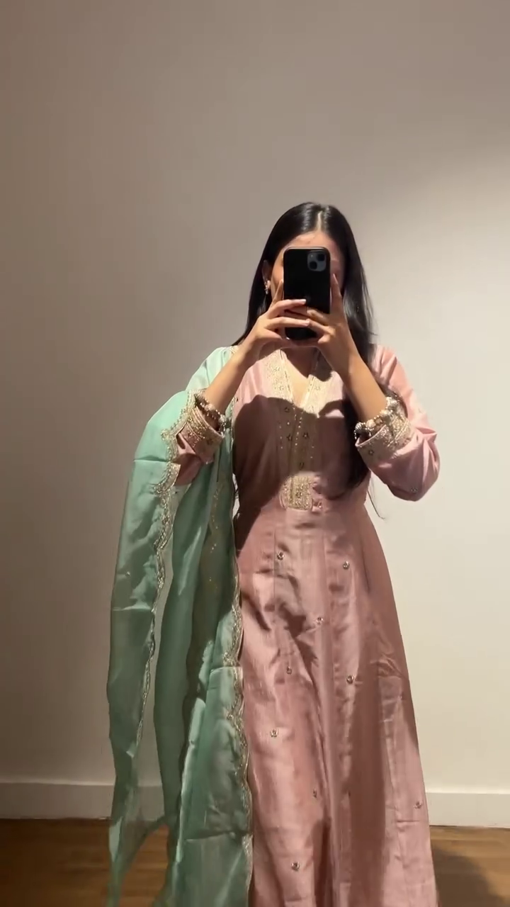 If you are looking for a sophisticated ethnic outfit that blends traditional embroidery with contemporary pastel tones, this pastel pink and mint green Anarkali suit set is a perfect choice. It also makes a thoughtful gift for weddings, festivals, or special celebrations.