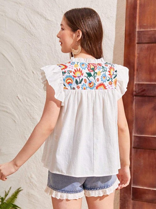Style it with a metallic skirt or leather pants. Add statement earrings and strappy heels. The white base acts as a canvas for bold styling choices.