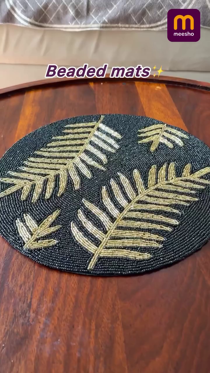Keywords for SEO: beaded table mat, decorative placemat, handcrafted bead mat, floral beaded mat, dining table décor, table centerpiece mat, home décor accessories, Meesho home décor.