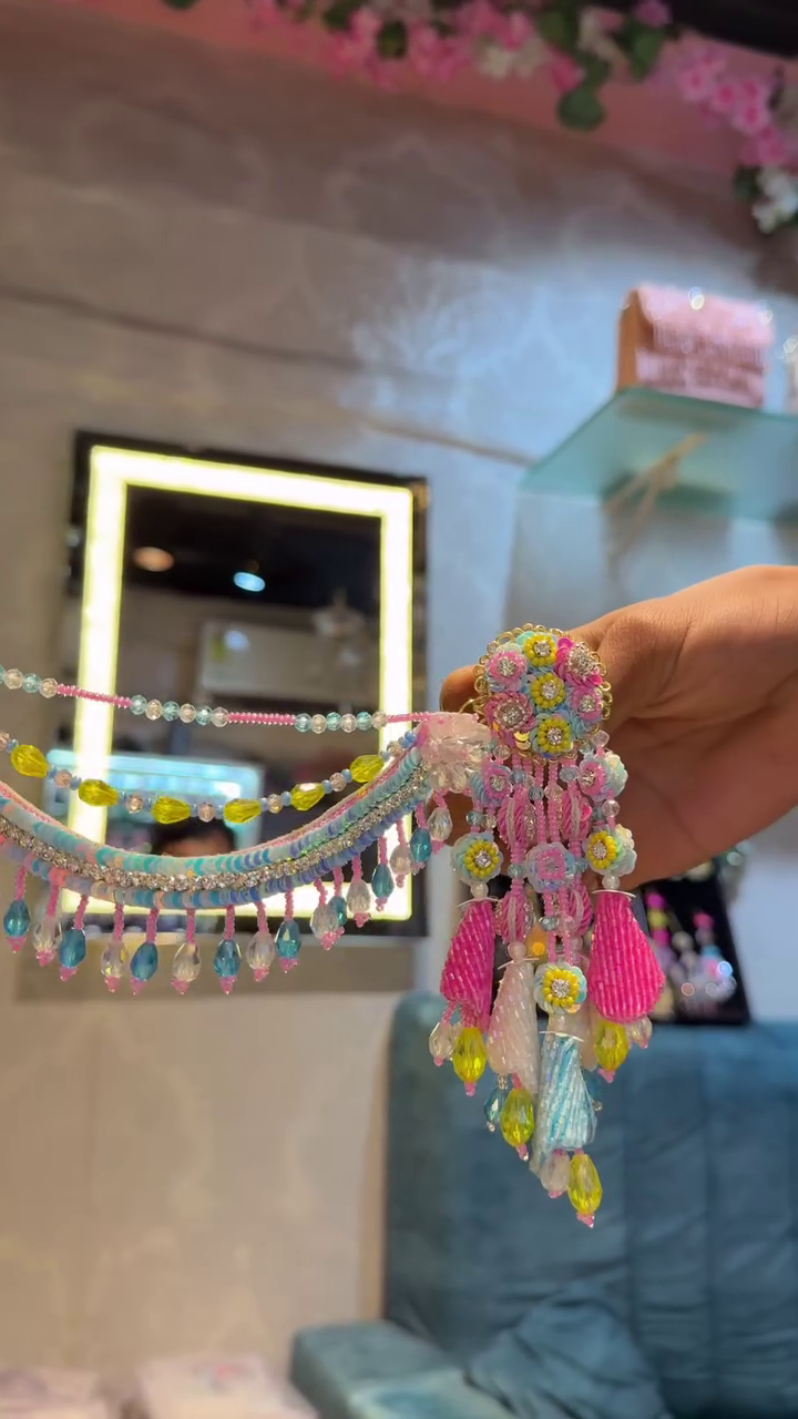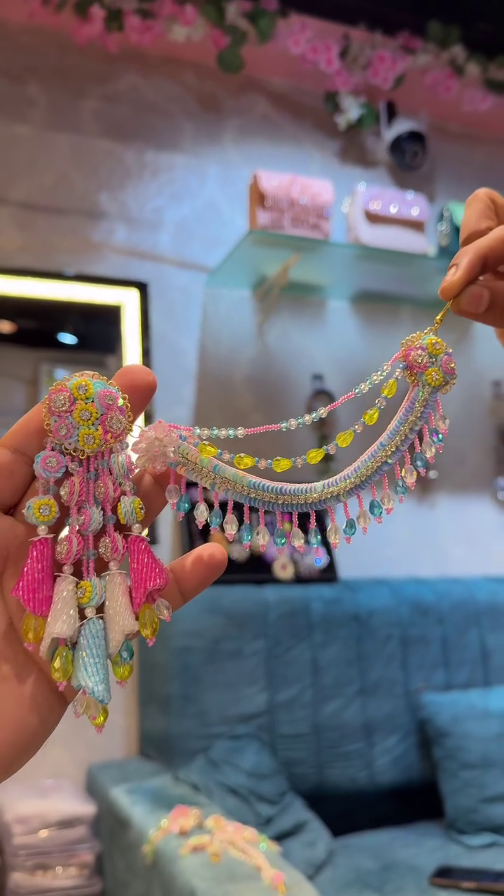 Perfectly suited for weddings, haldi, mehendi, sangeet, festive celebrations, cocktail parties, and cultural events, this ear cuff pairs beautifully with lehengas, sarees, Anarkali suits, shararas, and Indo-western outfits. Its pastel tones also complement floral outfits, organza sarees, and light embroidered ensembles effortlessly.