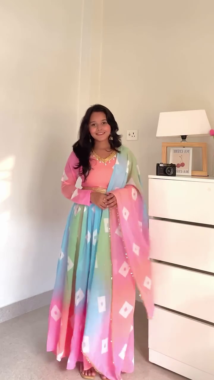 Shop this pastel multicolor Anarkali suit with matching dupatta, perfect for festive occasions, weddings, and celebrations. Lightweight, flowy, and graceful ethnic wear for women.