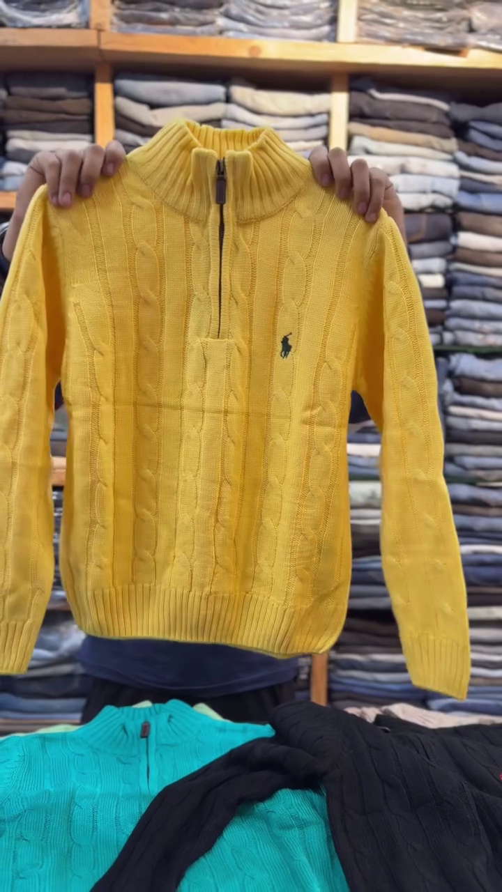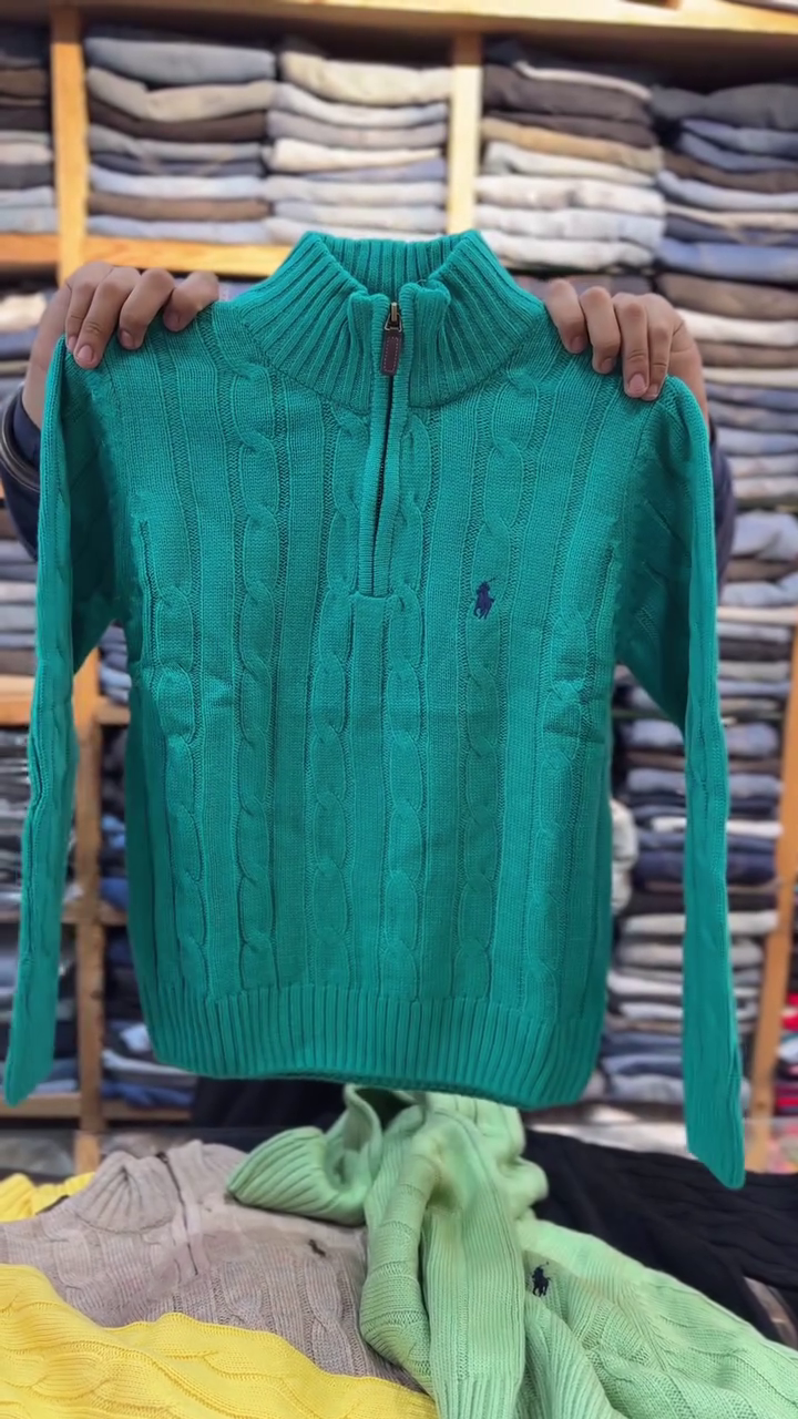 This premium cable-knit half-zip winter sweater is a timeless essential designed to deliver both warmth and style throughout the colder months. Crafted from high-quality, soft woolen fabric, this pullover ensures exceptional comfort while offering a polished, classy look suitable for everyday wear, office outfits, winter outings, or casual gatherings. The striking turquoise color adds a refreshing, modern touch to traditional knitwear, making it an eye-catching piece in any wardrobe.