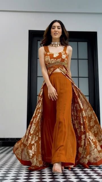 Rust Orange Indo-Western Jumpsuit with Printed Cape