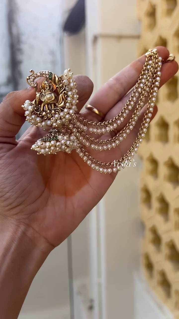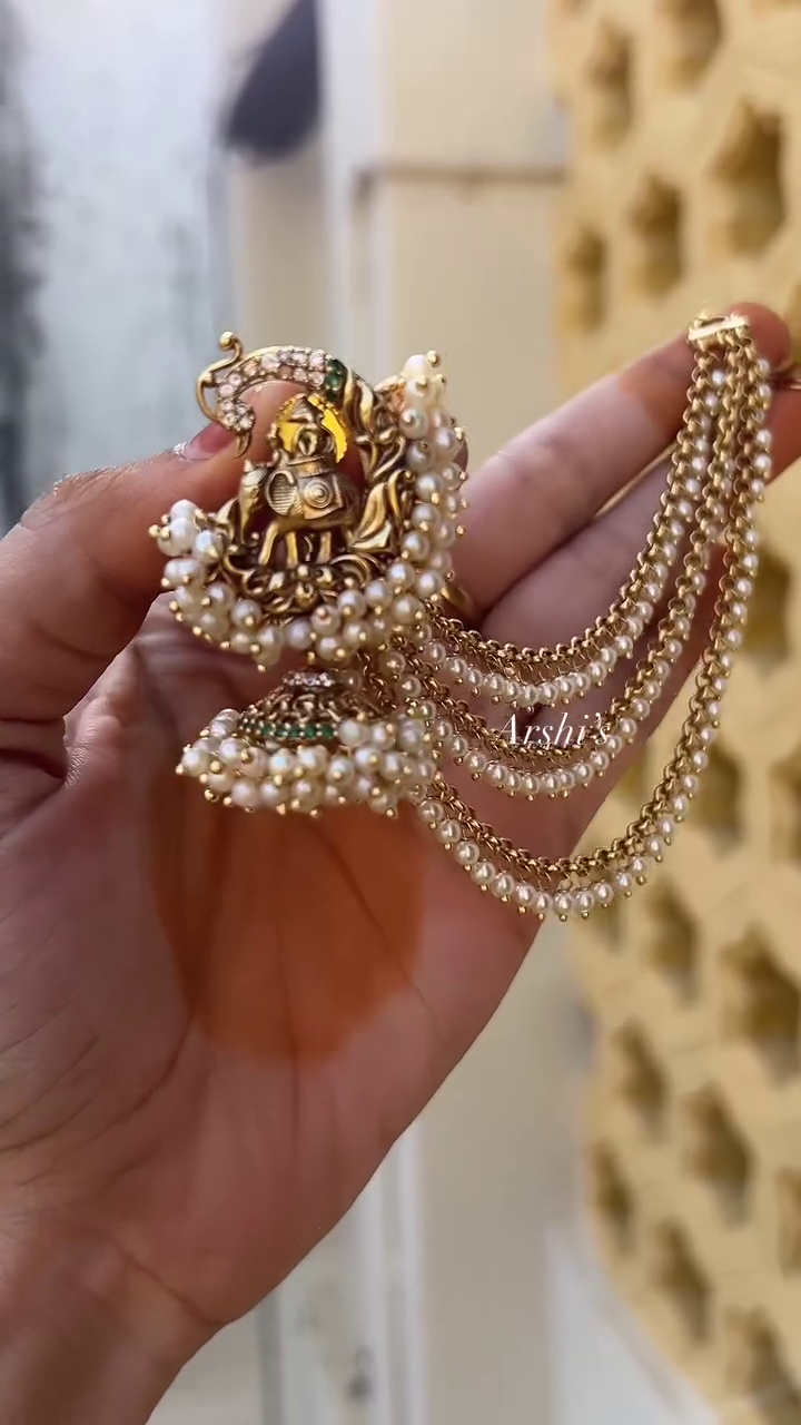 Enhance your ethnic look with this exquisite traditional pearl chain hair accessory featuring an antique gold motif and elegant pearl detailing. Perfect for bridal hairstyles, weddings, festivals, classical dance, and special occasions, it adds royal charm and grace to any outfit. Crafted with premium-quality pearls and durable metal finish, this lightweight yet luxurious hair ornament complements sarees, lehengas, and ethnic ensembles beautifully. A must-have jewelry piece for timeless elegance.