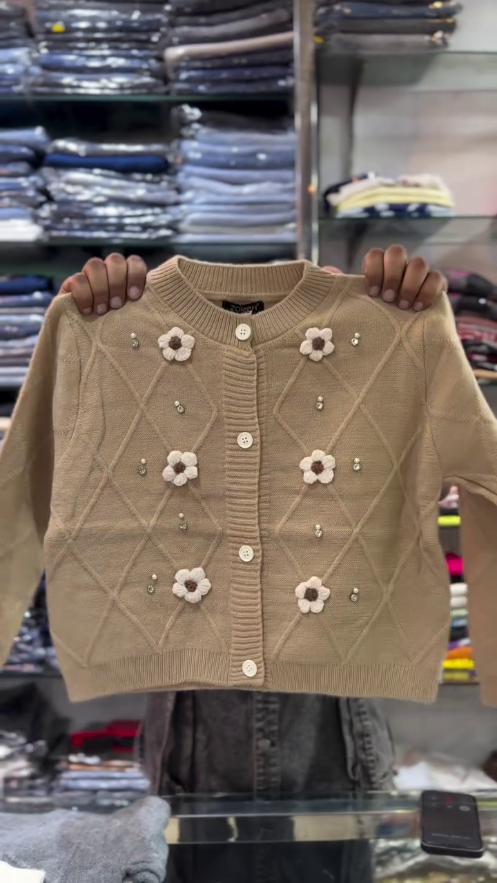 Whether you’re updating your little one’s winter collection or searching for something stylish yet functional, this baby pink floral knitted cardigan brings beauty and comfort together effortlessly. It’s a timeless and charming piece that every young girl will love wearing throughout the winter season.