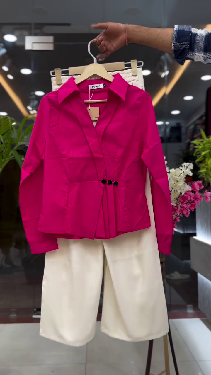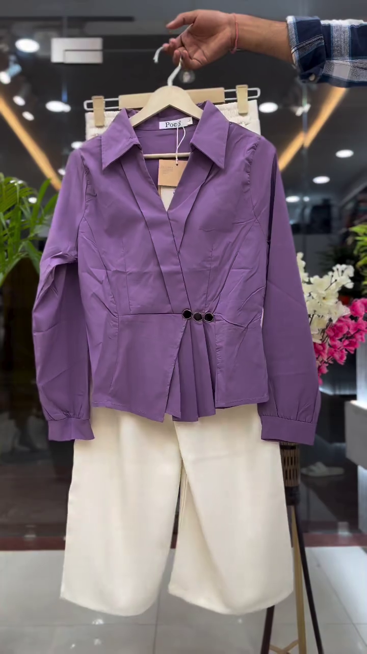 Upgrade your wardrobe with this stylish and versatile Women’s Purple Peplum Shirt Top with Cream Wide-Leg Pants Co-Ord Set, designed for modern women who love effortless elegance. This chic two-piece outfit blends contemporary tailoring with feminine detailing, making it perfect for office wear, brunch dates, casual outings, and semi-formal occasions.